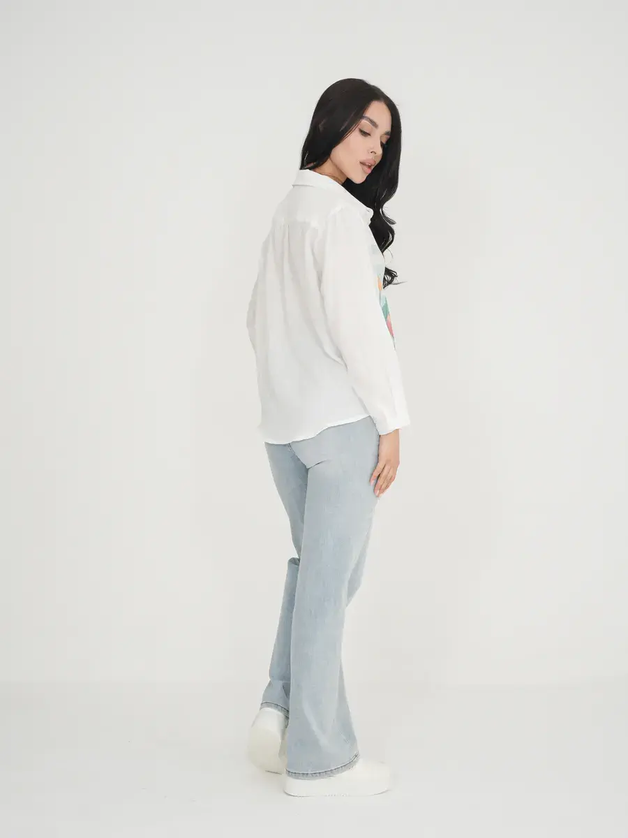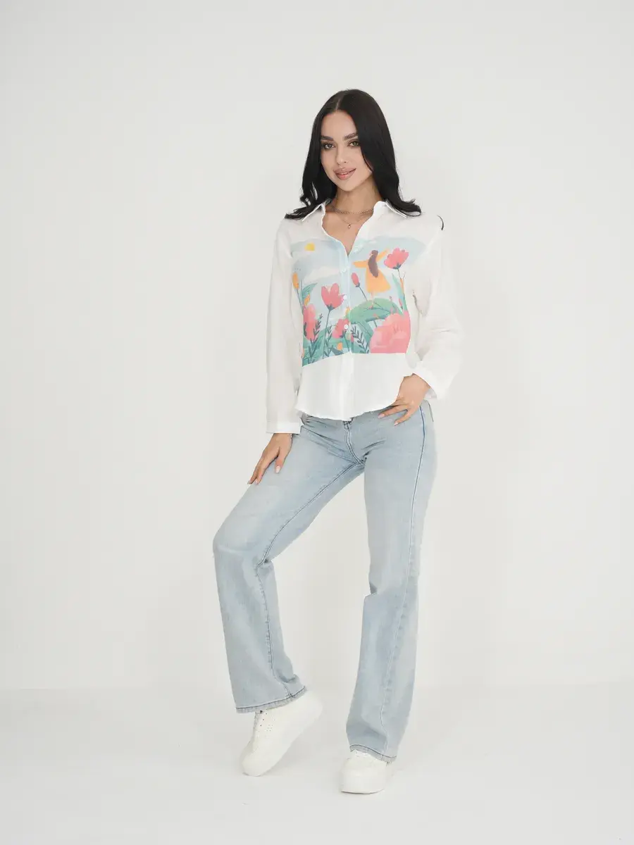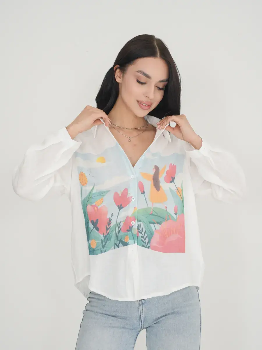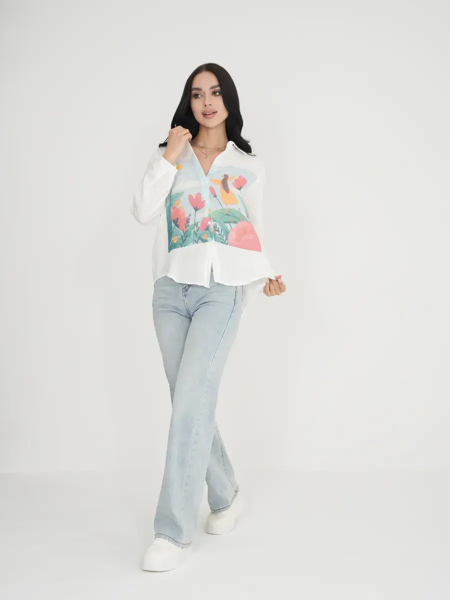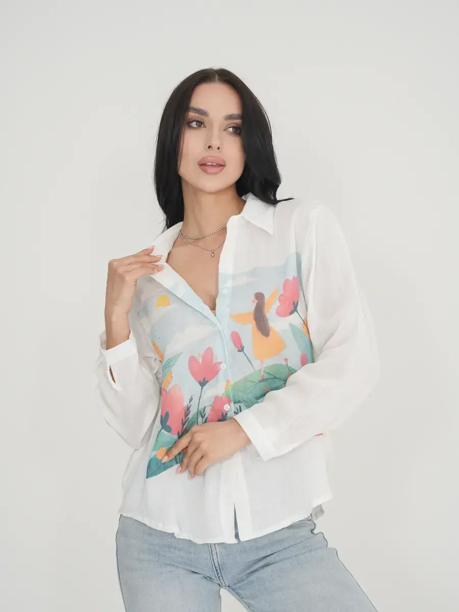 Женская белая офисная блузка с длинным рукавом станет отличным выбором для создания нарядного образа. Изготовленная из качественного хлопка, она обеспечивает комфорт и приятные тактильные ощущения в течение всего дня. Элегантный принт «всадники» добавляет изделию оригинальности и подчеркивает индивидуальность. Такая модель идеально подходит для работы в офисе, деловых встреч или торжественных мероприятий, где важен стиль и аккуратность. Продуманный крой гарантирует удобство и свободу движений, а длинный рукав помогает сохранить опрятный вид в прохладное время года. Универсальный белый цвет легко сочетается с различными элементами гардероба, позволяя создавать как строгие, так и более свободные сочетания. Эта нарядная женская блузка отлично впишется в повседневный и деловой стиль, подчеркнув вашу женственность и вкус.