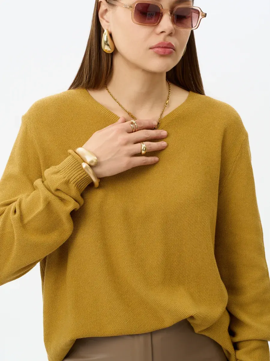 Женский джемпер оверсайз — это модный элемент гардероба, который сочетает в себе стиль и комфорт. Он станет отличным выбором для любого случая: от повседневных встреч до более нарядных выходов. Изготовленный из тонкого, вязаного материала, не только теплый, но и приятный на ощупь. Его свободный фасон позволяет легко сочетать его с различными предметами одежды, такими как брюки или юбки, создавая разнообразные образы. Прекрасно подойдет для создания как уютных, так и более изысканных нарядов, добавляя индивидуальность вашему стилю. Этот джемпер станет прекрасным дополнением вашего гардероба, позволяя вам оставаться в тренде и чувствовать себя комфортно в любую погоду