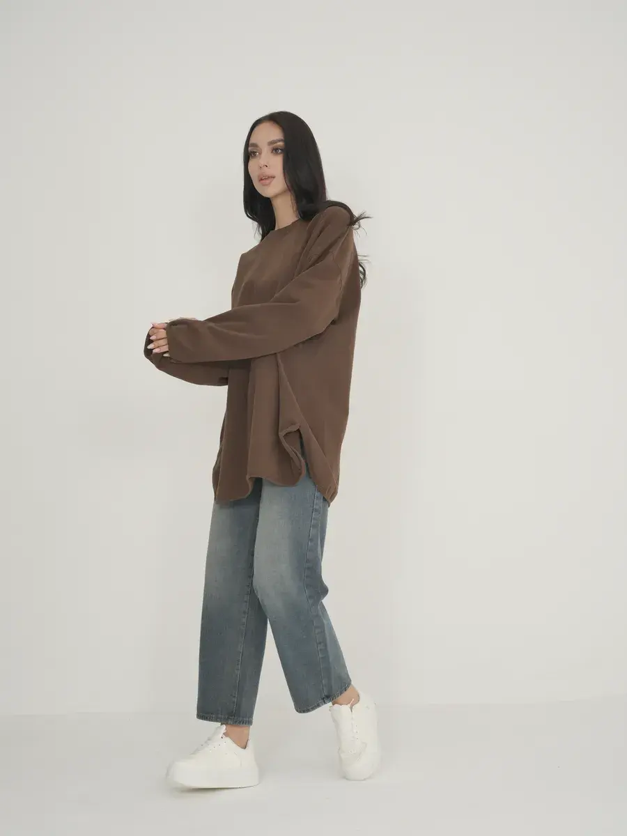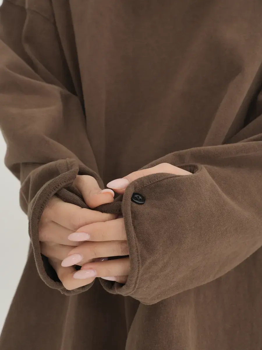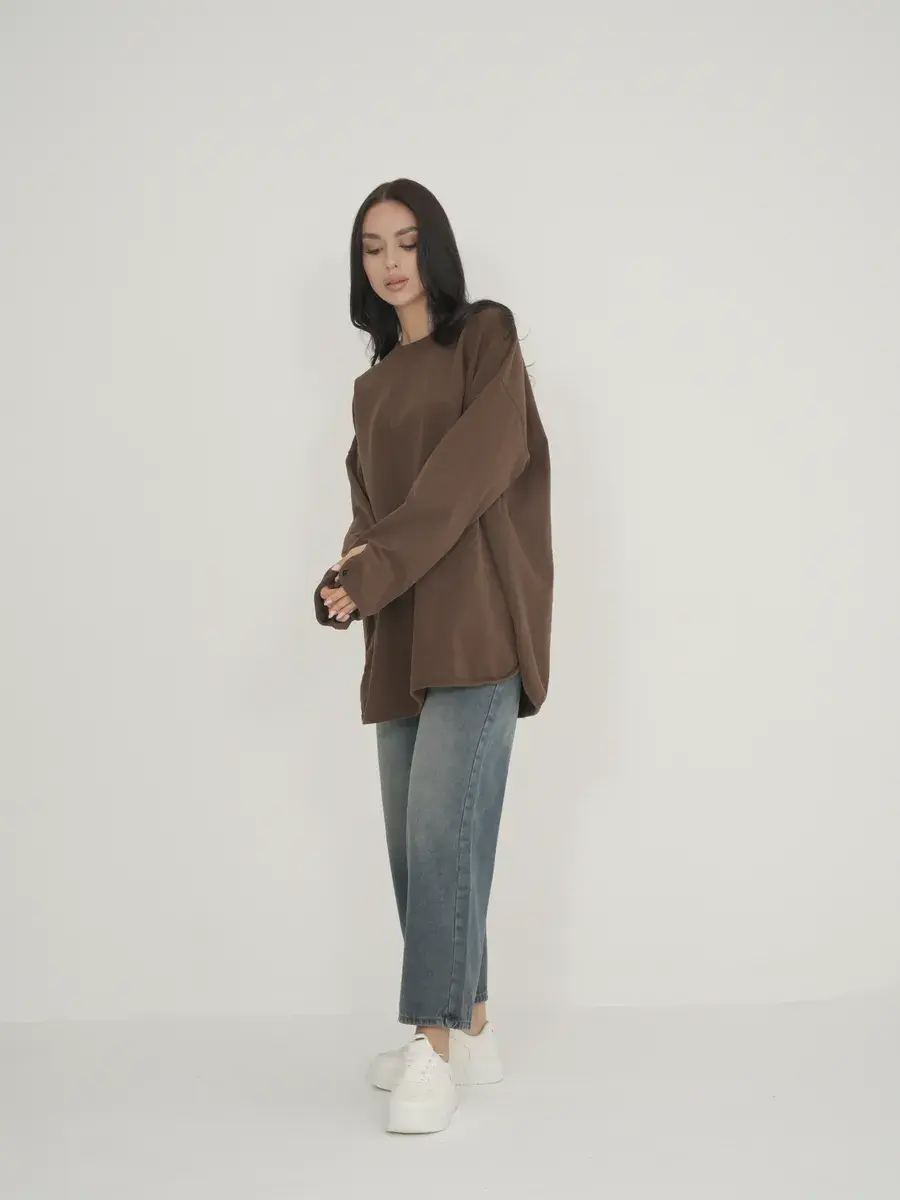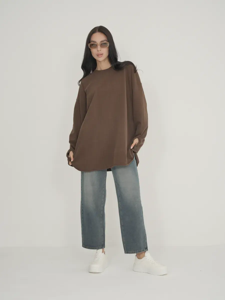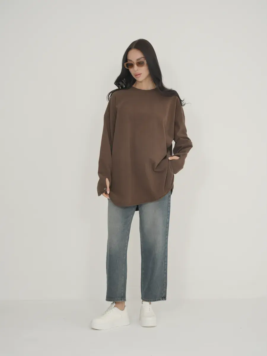 Эластан (5%): Добавляет эластичность и форму, позволяя лонгливу хорошо сидеть на фигуре и не терять форму после стирки.
