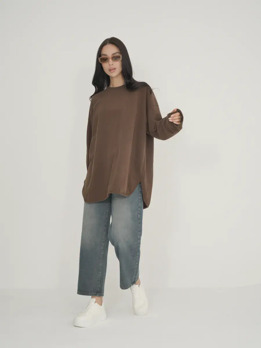 Стиль и фасон: Лонгслив может иметь различные силуэты, от облегающих до свободных, обеспечивая комфорт и стиль. Он оформлен с круглым вырезом воротника. Дизайн часто минималистичен, что позволяет легко сочетать его с другими предметами одежды.