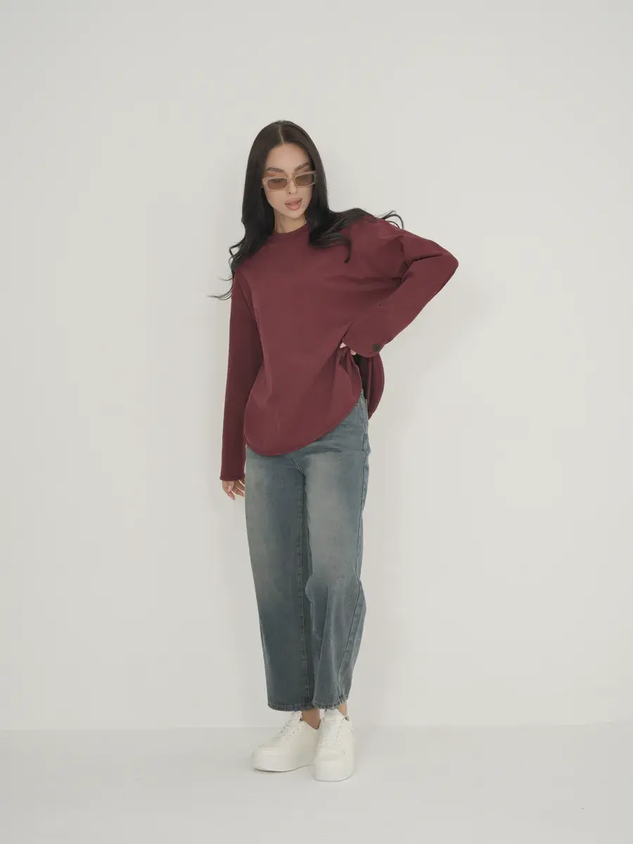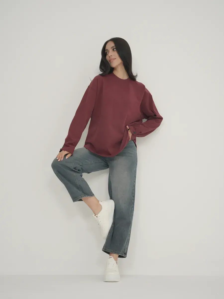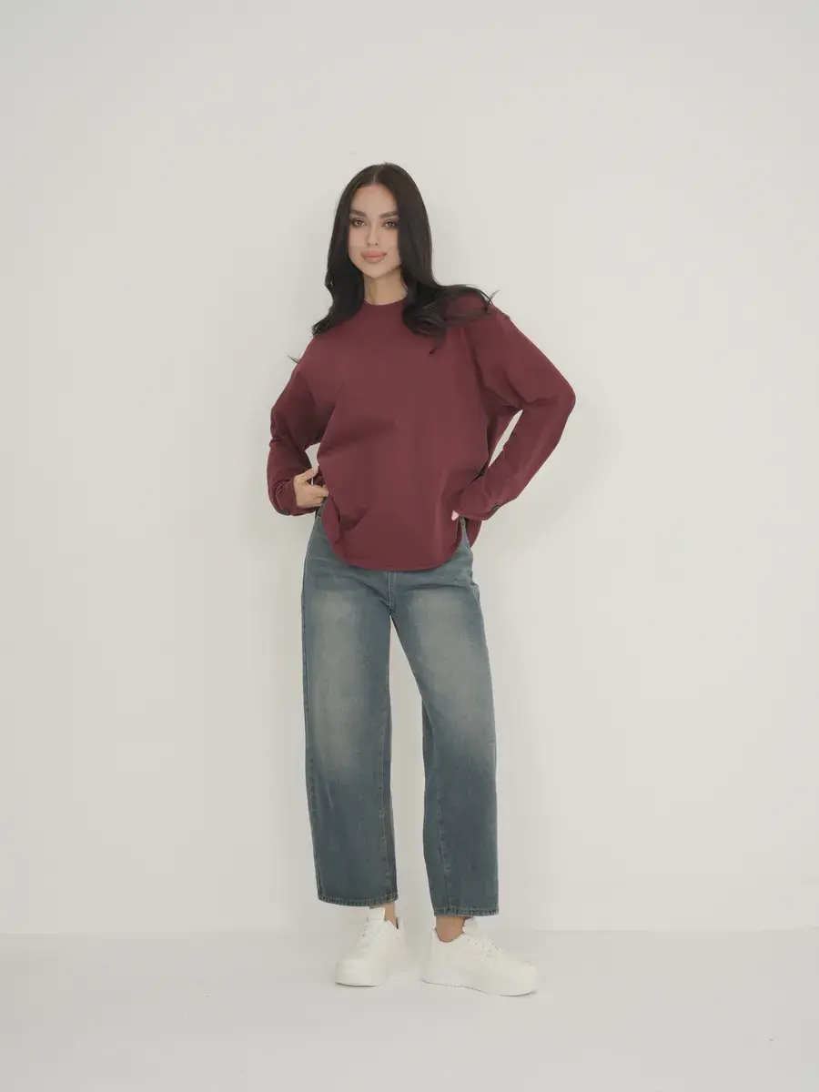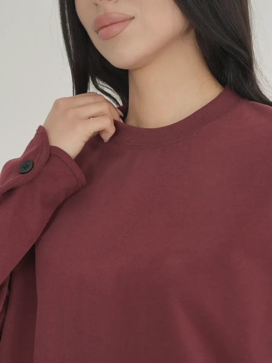 Стиль и фасон: Лонгслив может иметь различные силуэты, от облегающих до свободных, обеспечивая комфорт и стиль. Он оформлен с круглым вырезом воротника. Дизайн часто минималистичен, что позволяет легко сочетать его с другими предметами одежды.