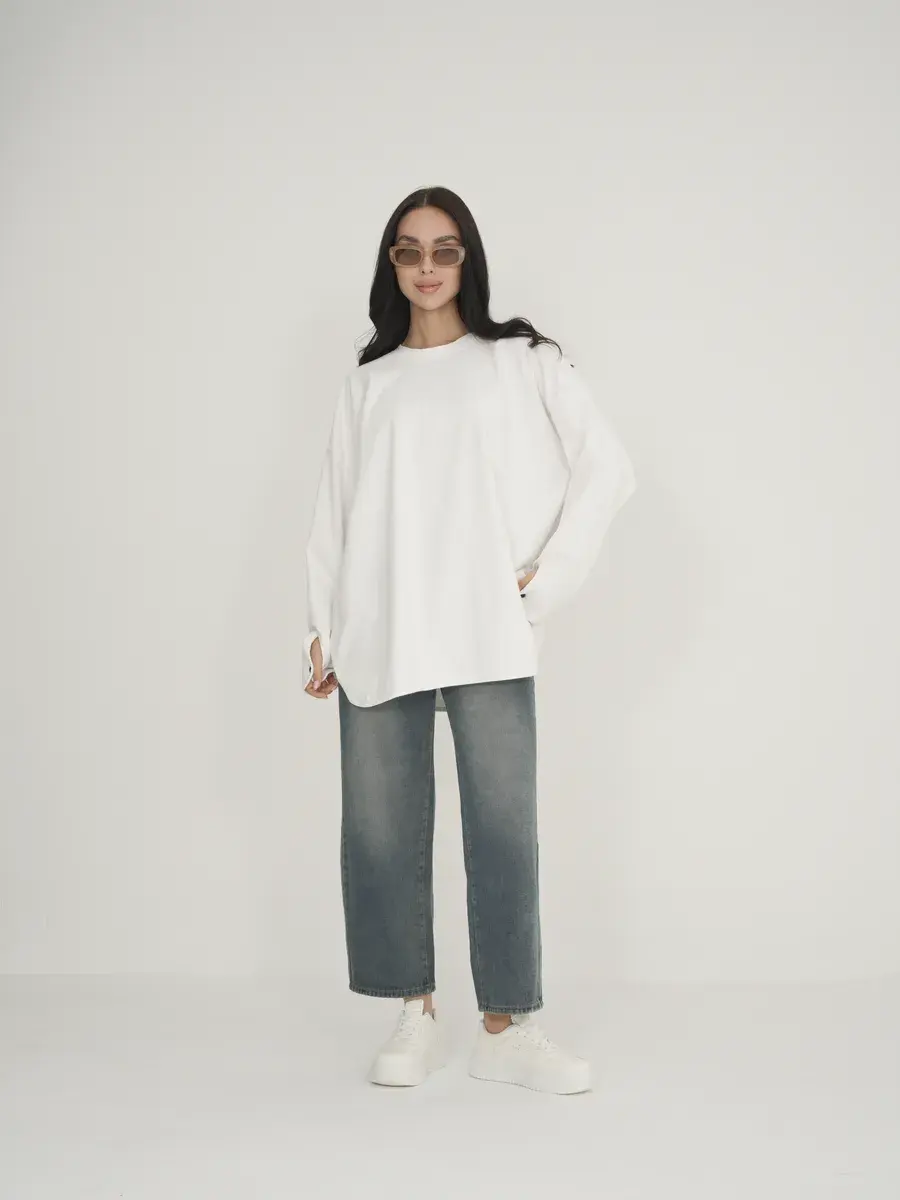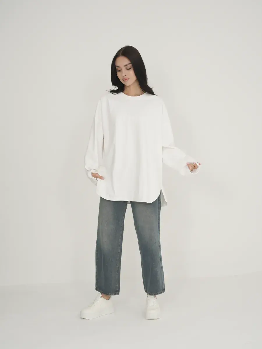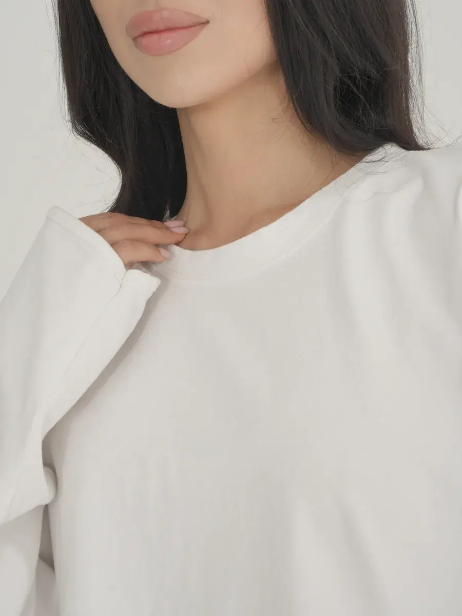 Эластан (5%): Добавляет эластичность и форму, позволяя лонгливу хорошо сидеть на фигуре и не терять форму после стирки.