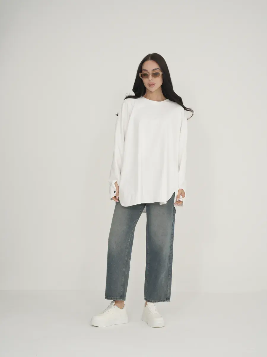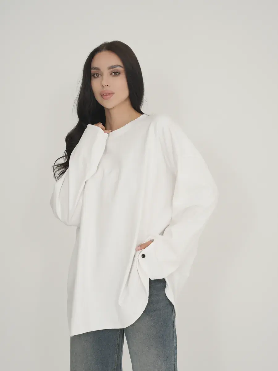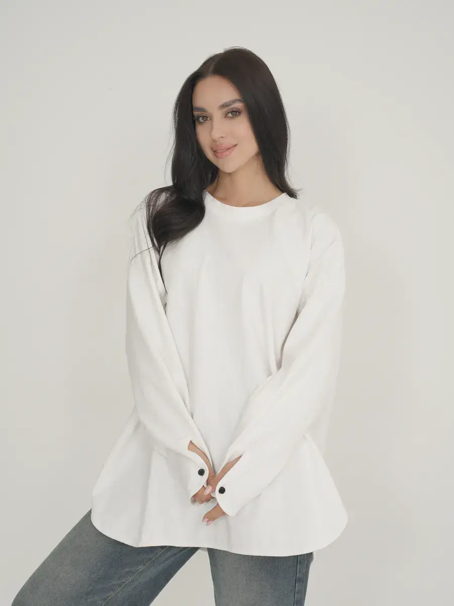 Эластан (5%): Добавляет эластичность и форму, позволяя лонгливу хорошо сидеть на фигуре и не терять форму после стирки.